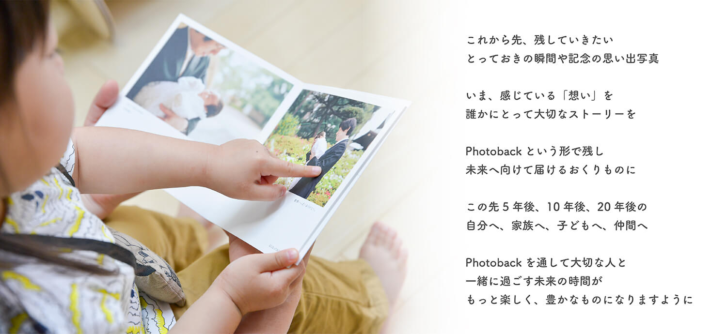 Photoback(フォトバック)は、だれでもカンタンにこだわりの"本"がつくれるフォトブック作成サービスです。