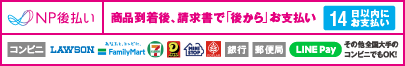 - 「NP後払い」は株式会社ネットプロテクションズが提供する決済サービスです。詳細はこちらをご覧ください。